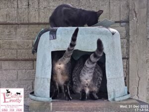 Building elevated safe, warm dens for each cat family to be protected from the harsh outdoor elements i.e. cold, wind, rain and vicious dogs